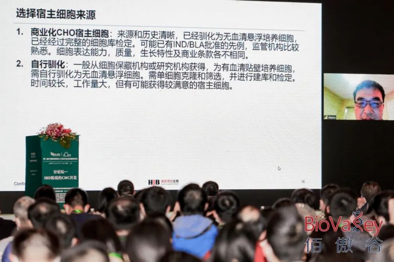 受疫情影響,此次會議劉總選擇了線上演講,演講圍繞CHO細胞的遺傳學特性、多樣性等內容展開。劉總指出,適合細胞株開發的CHO宿主細胞要求具備以下條件:高表達能力、質量符合要求、可高密度無血清懸浮培養、可以在反應器條件下維持長時間高活率、少產代謝廢物和NH4+和乳酸等。此外,劉總提到,在選擇宿主細胞時應在技術、法規和商業這三個方面有所考量,如購買商業化宿主細胞時,應考慮其商業條款的短期和長期成本等。